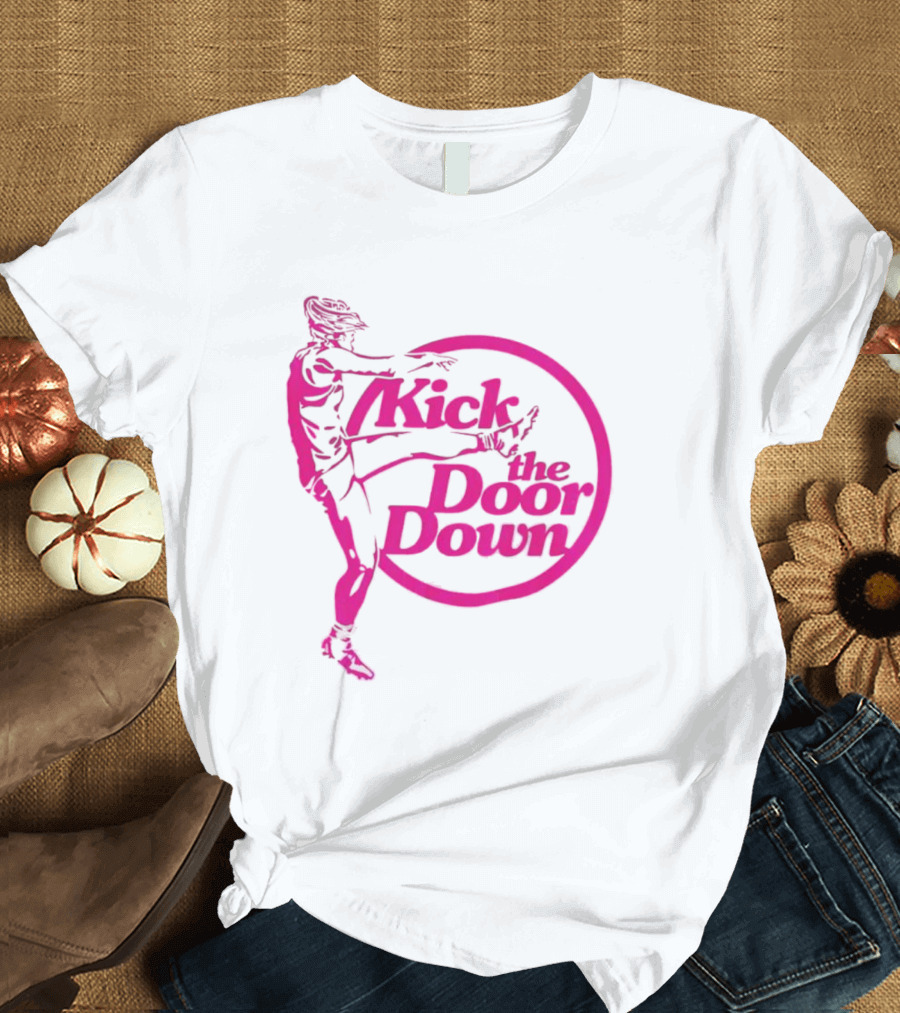 Kick The Door Down Pink Circle Footballer Kicker T-Shirt