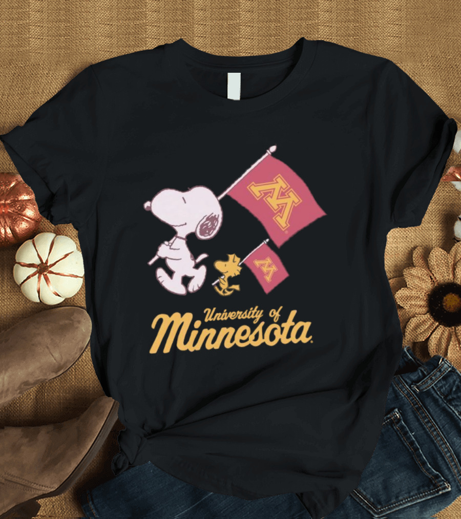 Snoopy And Woodstock University Of Minnesota Flags T-Shirt
