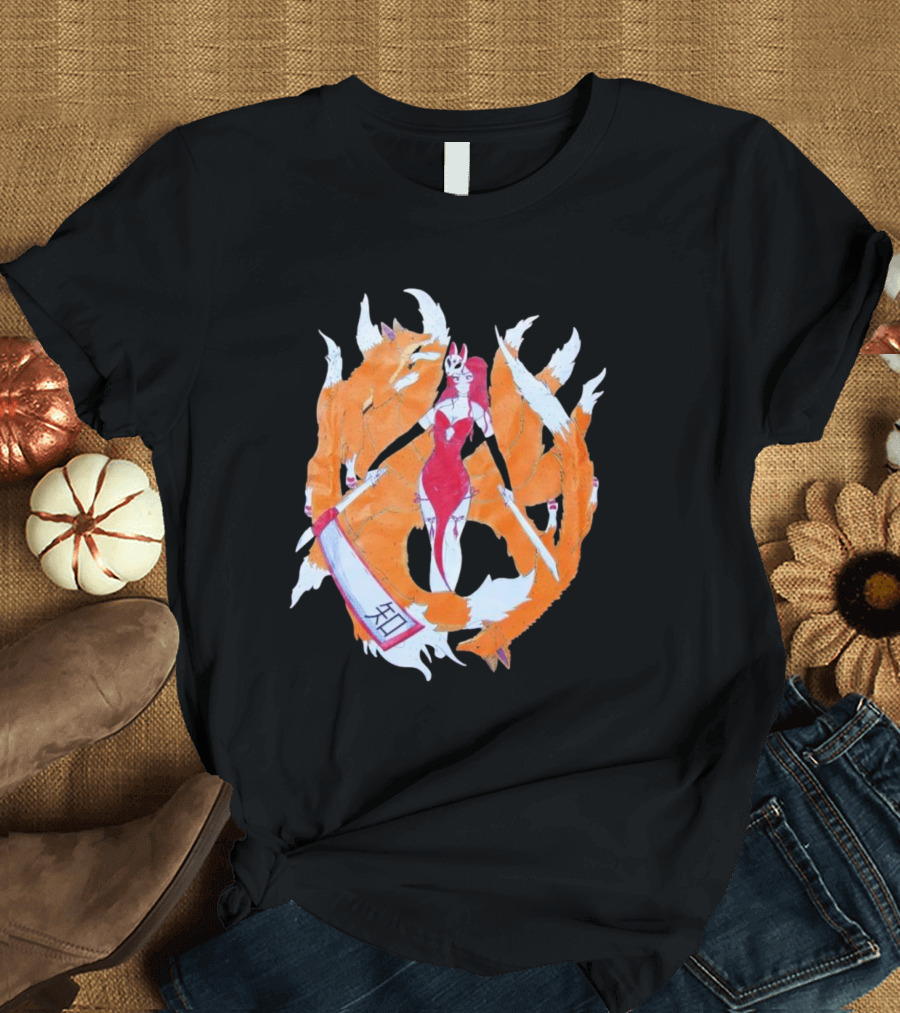 Sage of Secrets Nine-Tailed Fox Omnyoji Shirt made from 100% pre-shrunk ring-spun cotton, unisex regular fit based on U.S. standard sizing. The shirt is designed, cut, sewn, and printed in the United States. Available in sizes S-5XL.