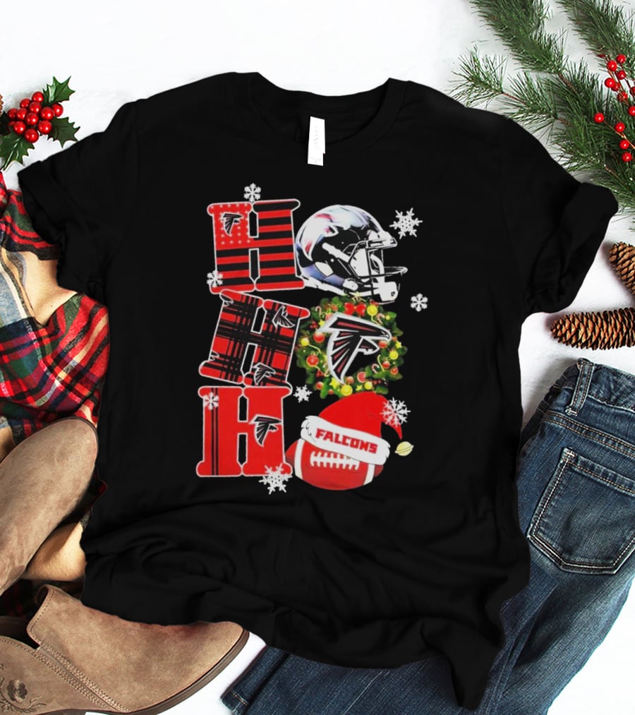 Atlanta Falcons Ho Ho Ho Merry Christmas Helmet Wreath Snowflakes Football Holiday T-Shirt