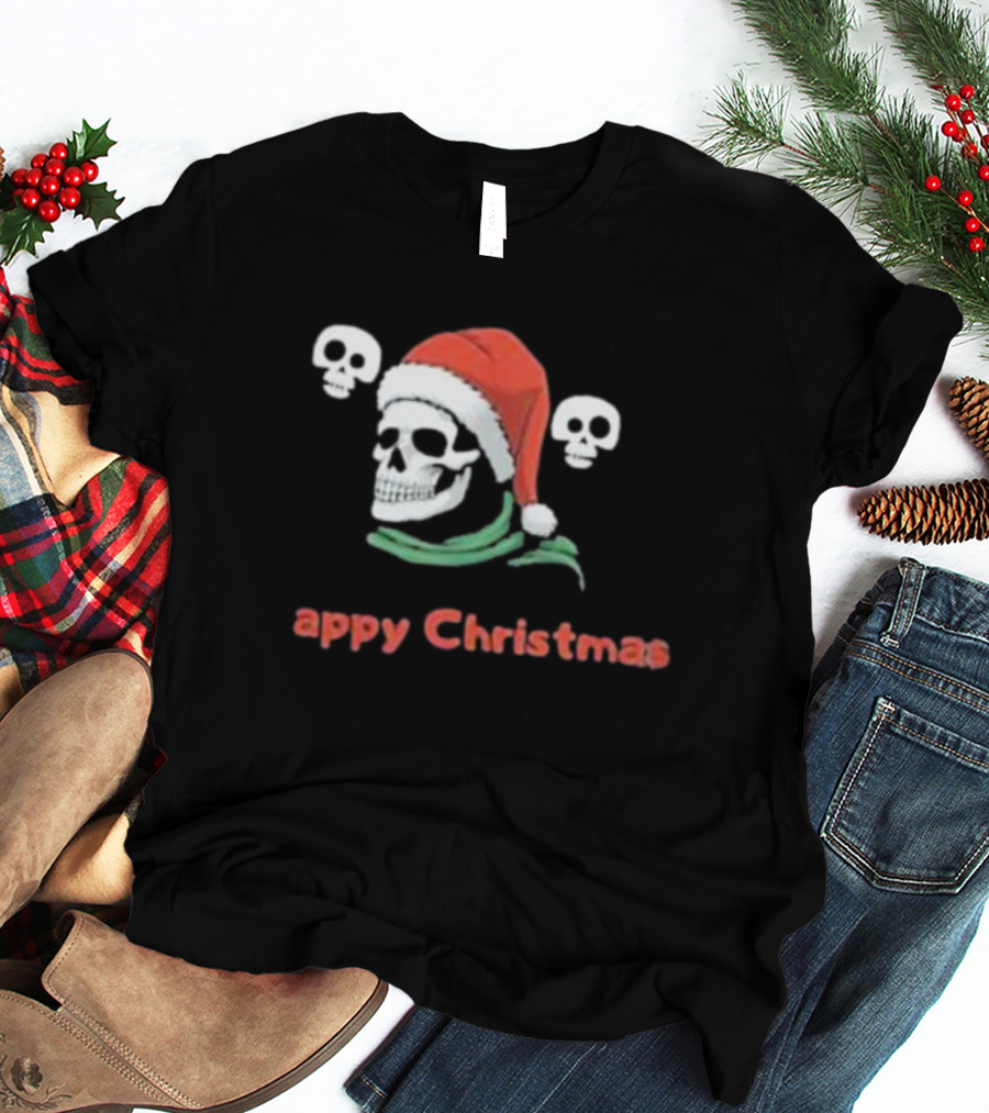 Happy Christmas Skull Santa Hat Shirt made from 100% pre-shrunk ring-spun cotton, unisex regular fit based on U.S. standard sizing. The shirt is designed, cut, sewn, and printed in the United States. Available in sizes S-5XL.