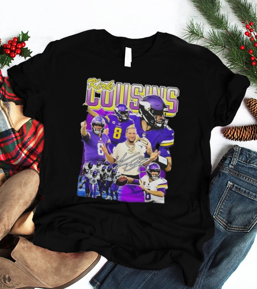 Kirk Cousins Minnesota Vikings Quarterback Number 8 Football Collage Shirt made from 100% pre-shrunk ring-spun cotton, unisex regular fit based on U.S. standard sizing. The shirt is designed, cut, sewn, and printed in the United States. Available in sizes S-5XL.