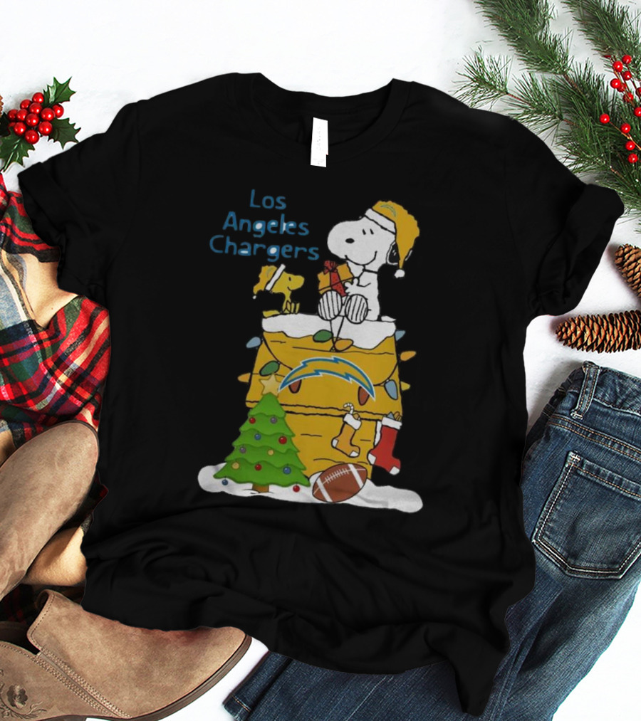 Santa Snoopy Woodstock Los Angeles Chargers Christmas Tree Football Socks T-Shirt