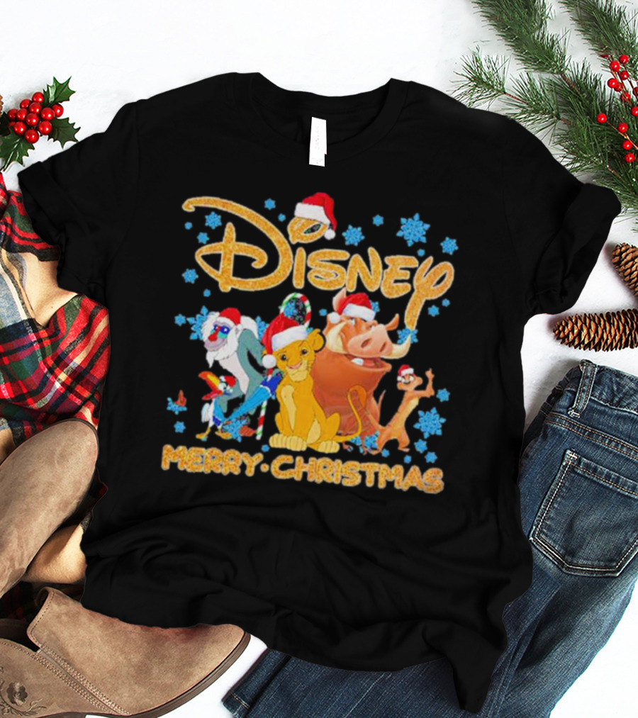 Disney Merry Christmas The Lion King Characters Santa Hats Snowflakes T-Shirt