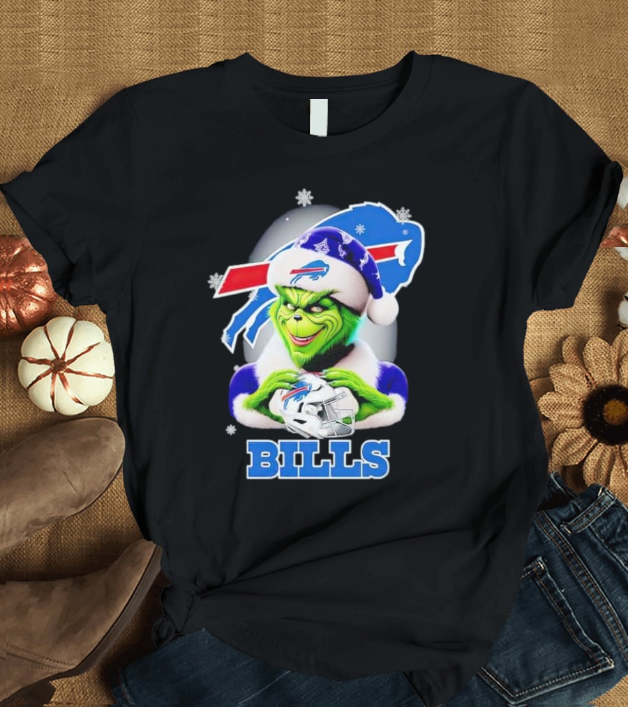 Grinch Love Buffalo Bills Christmas Santa Hat Snowflakes T-Shirt