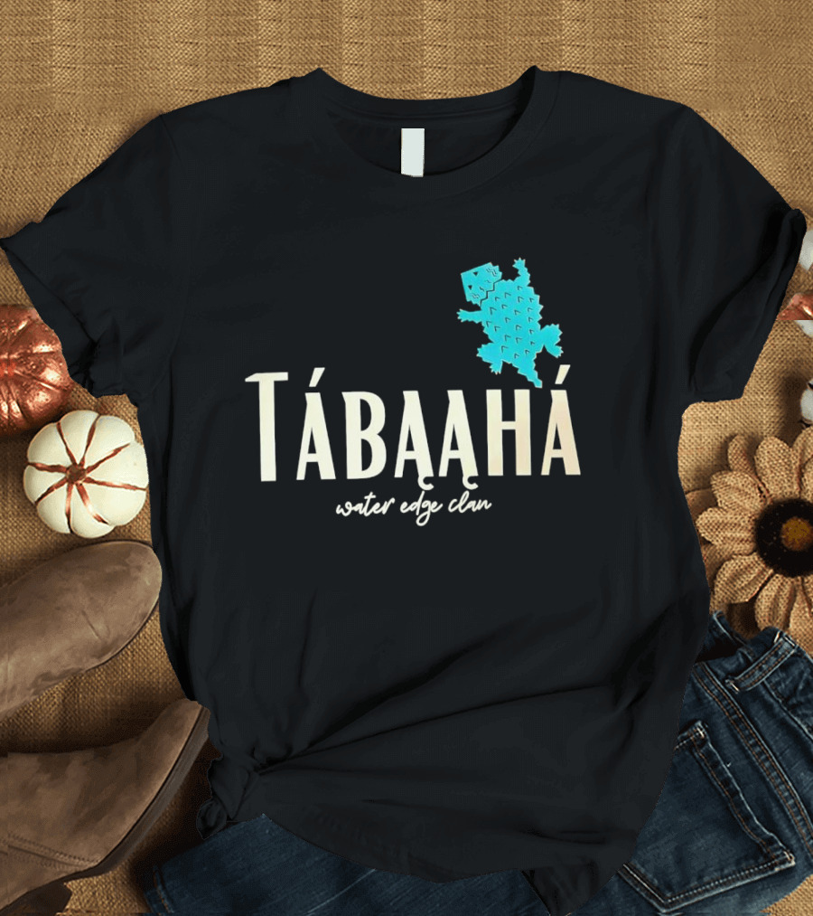 Tábąąhá Water Edge Clan Turquoise Turtle Shirt made from 100% pre-shrunk ring-spun cotton, unisex regular fit based on U.S. standard sizing. The shirt is designed, cut, sewn, and printed in the United States. Available in sizes S-5XL.