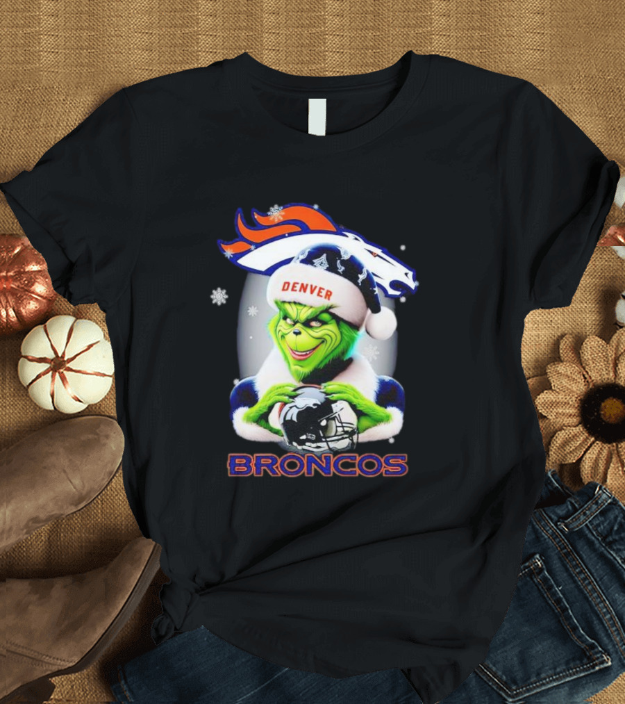 Denver Broncos Christmas Grinch Holding Football Helmet T-Shirt