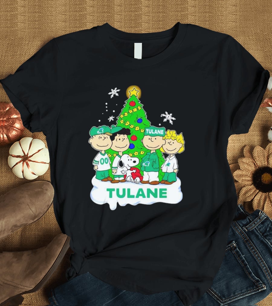 Peanuts Characters Tulane Green Wave Christmas Tree Snoopy Snowflakes T-Shirt