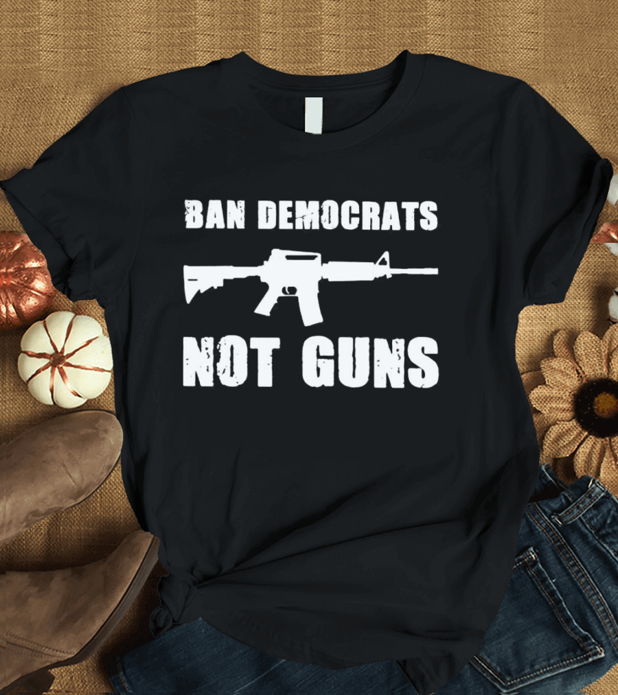 Ban Democrats Not Guns Rifle Shirt made from 100% pre-shrunk ring-spun cotton, unisex regular fit based on U.S. standard sizing. The shirt is designed, cut, sewn, and printed in the United States. Available in sizes S-5XL.