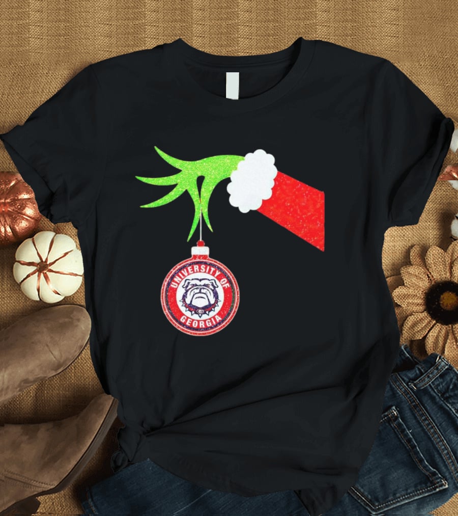 Grinch Hand Holding University Of Georgia Bulldogs Christmas T-Shirt
