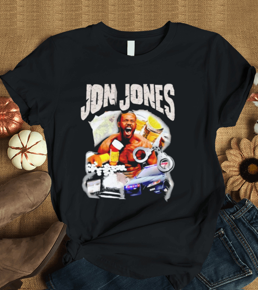 Jon Jones Vintage Police Car Handcuffs Pills Bottles T-Shirt