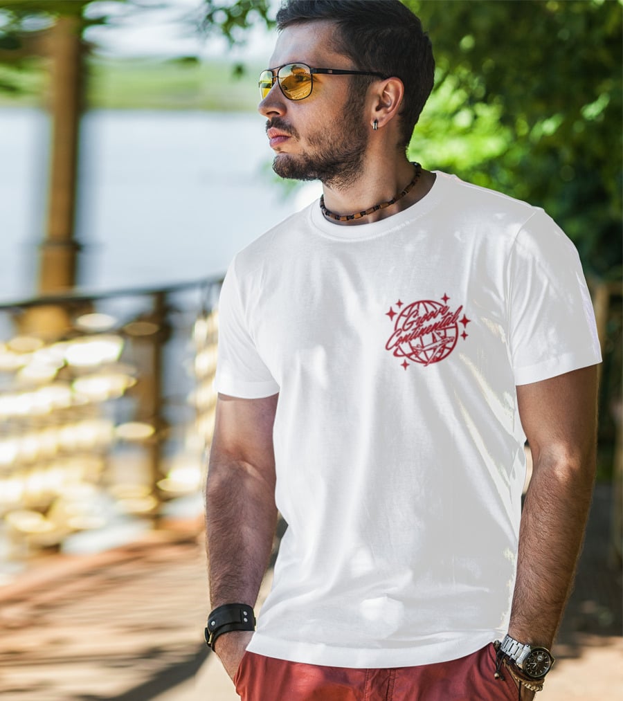 Yung Bae Groove Continental Red Globe Graphic With Stars T-Shirt