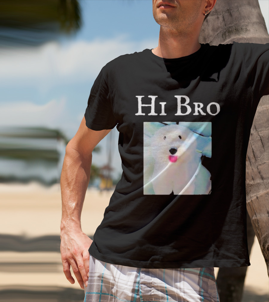 Hi Bro Fluffy Dog Image Shirt made from 100% pre-shrunk ring-spun cotton, unisex regular fit based on U.S. standard sizing. The shirt is designed, cut, sewn, and printed in the United States. Available in sizes S-5XL.