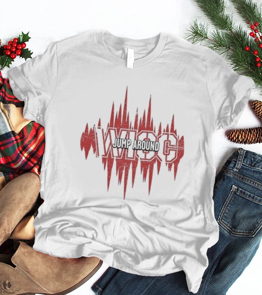 Wioc Jump Around Soundwave Shirt made from 100% pre-shrunk ring-spun cotton, unisex regular fit based on U.S. standard sizing. The shirt is designed, cut, sewn, and printed in the United States. Available in sizes S-5XL.