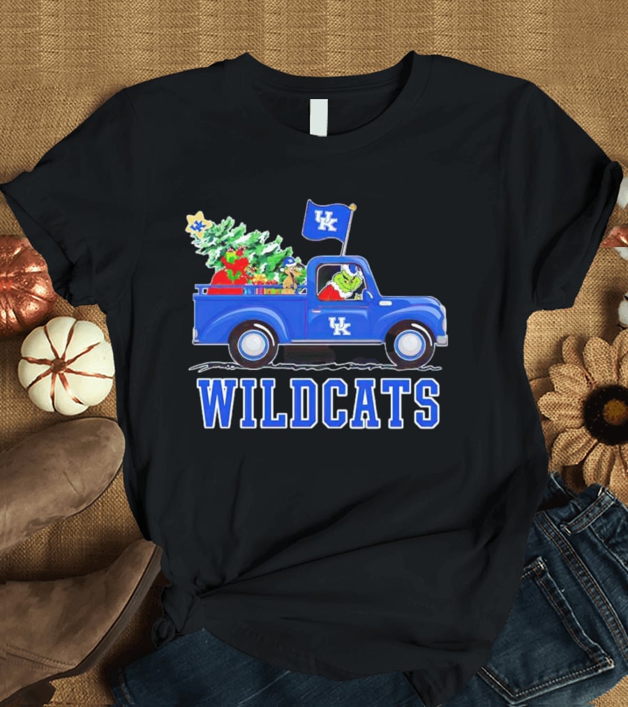 Grinch Driving Christmas Truck UK Wildcats Shirt made from 100% pre-shrunk ring-spun cotton, unisex regular fit based on U.S. standard sizing. The shirt is designed, cut, sewn, and printed in the United States. Available in sizes S-5XL.