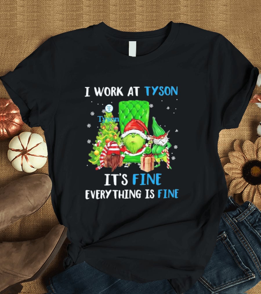 I Work At Tyson Grinch It's Fine Everything Is Fine Christmas T-Shirt