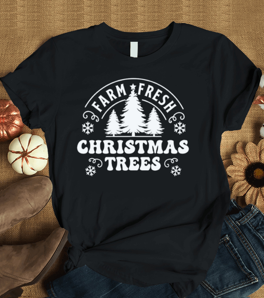 Farm Fresh Christmas Trees Snowflakes Pines T-Shirt