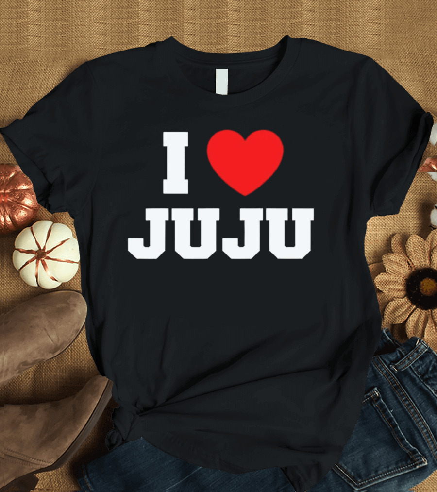 I Love Juju Red Heart Shirt made from 100% pre-shrunk ring-spun cotton, unisex regular fit based on U.S. standard sizing. The shirt is designed, cut, sewn, and printed in the United States. Available in sizes S-5XL.