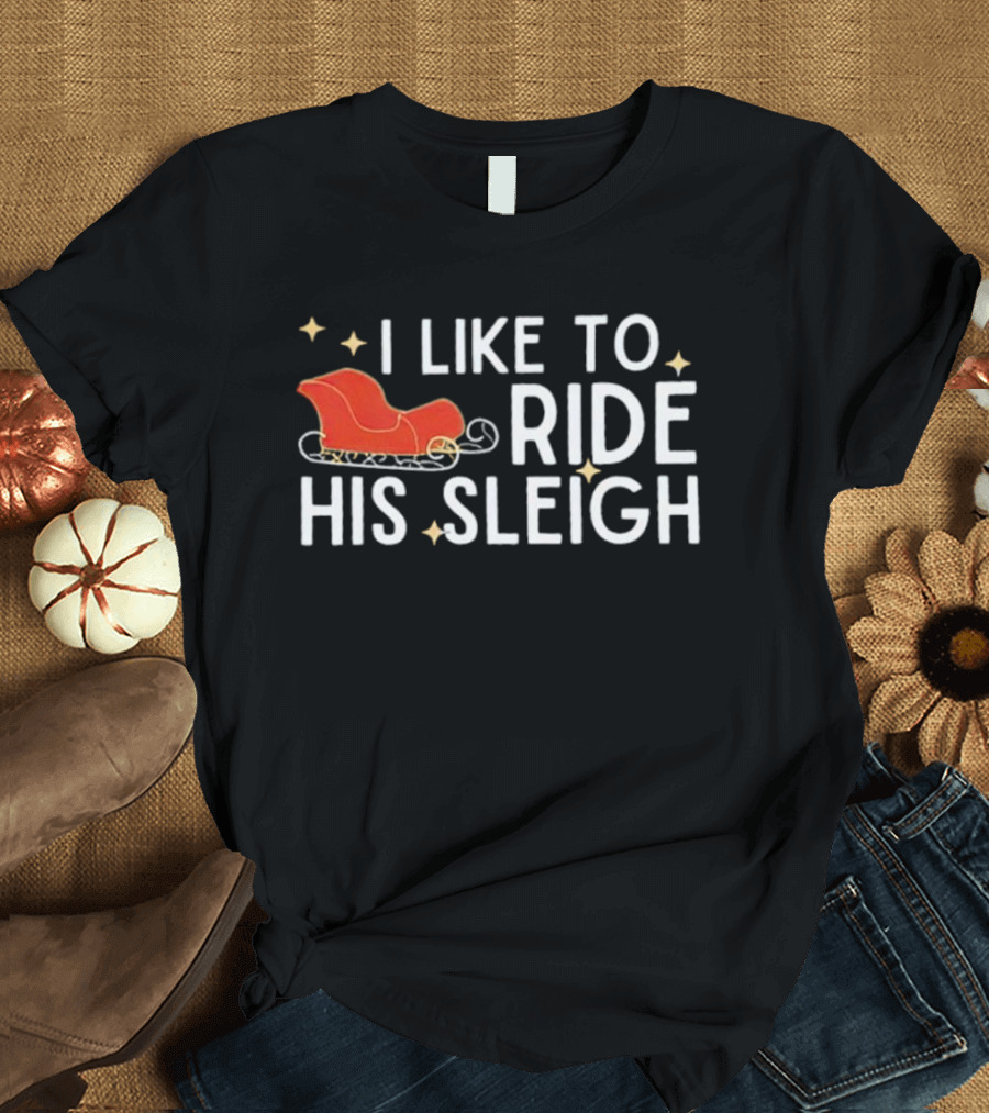 I Like To Ride His Sleigh Christmas Santa Sleigh Stars T-Shirt