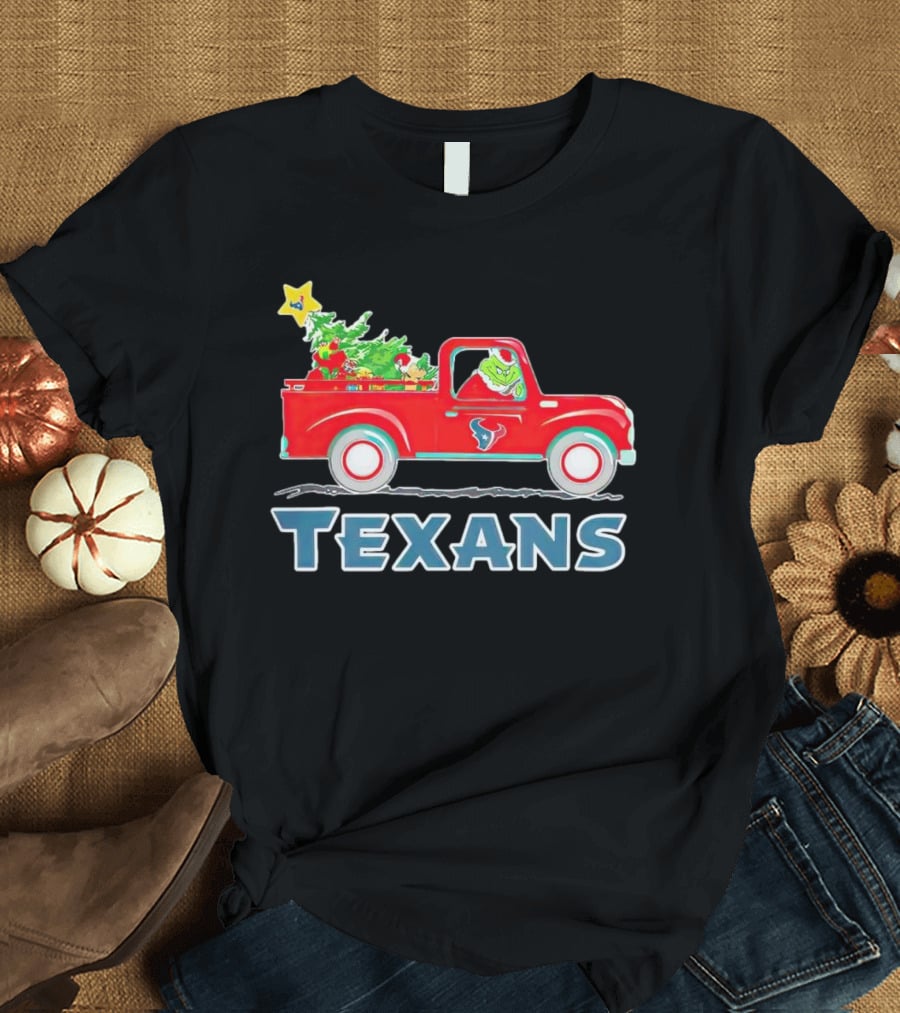 Grinch Driving Red Christmas Truck With Houston Texans T-Shirt