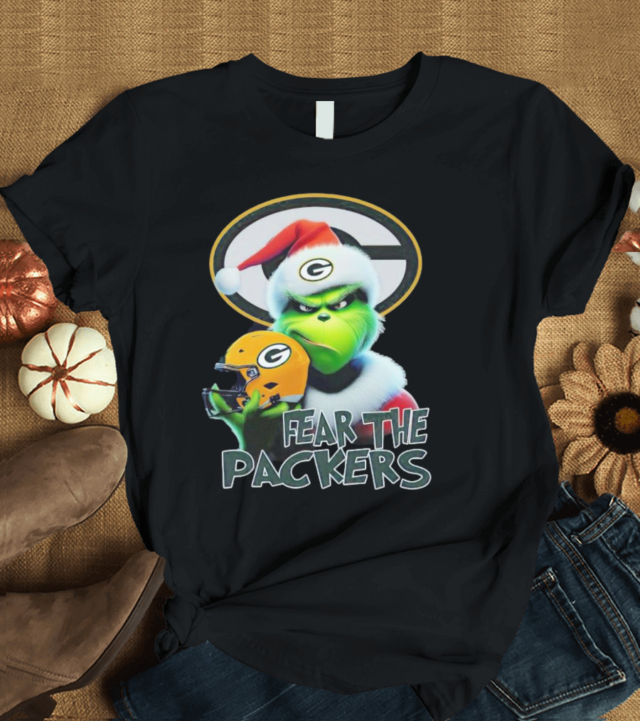 Grinch Fear The Green Bay Packers Christmas G Helmet T-Shirt