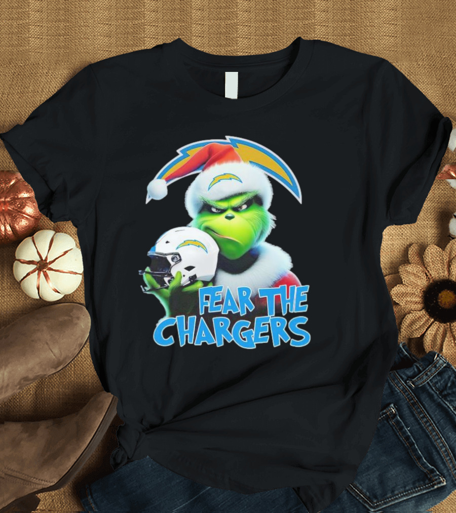 Grinch Santa Holding Los Angeles Chargers Helmet Fear The Chargers T-Shirt