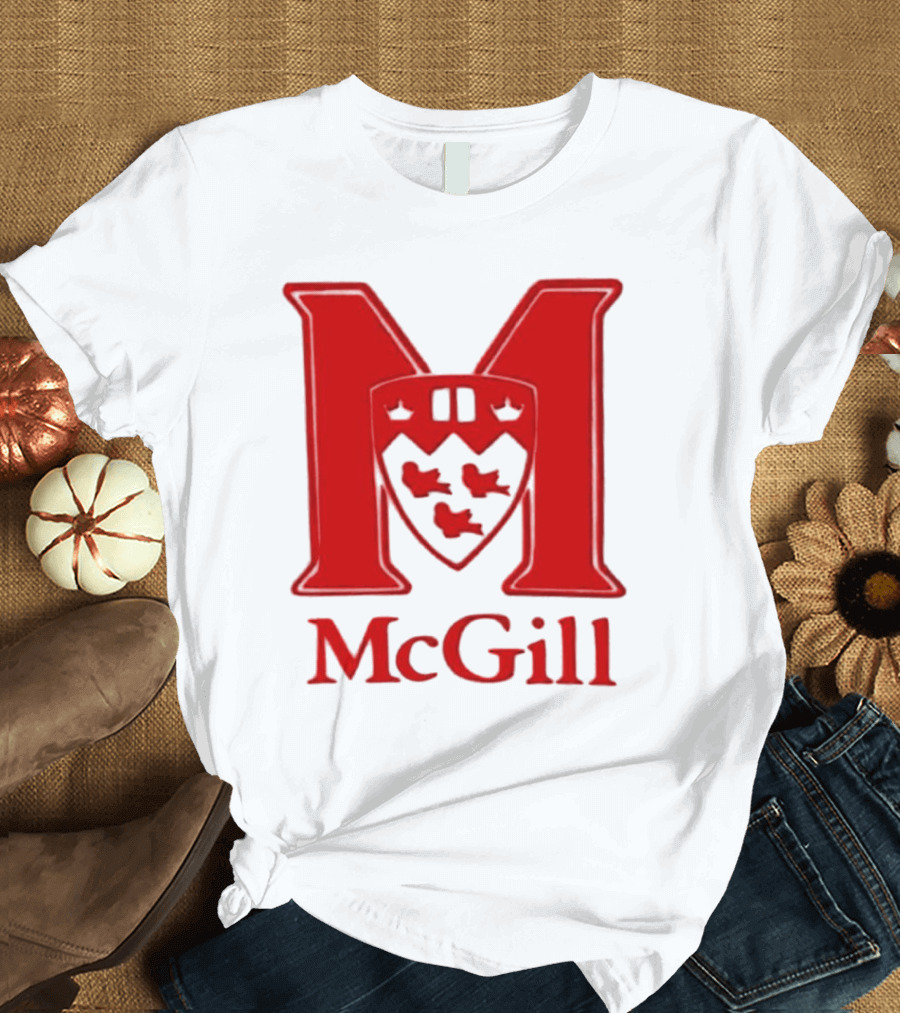 McGill University Large Red M and Shield Emblem Shirt made from 100% pre-shrunk ring-spun cotton, unisex regular fit based on U.S. standard sizing. The shirt is designed, cut, sewn, and printed in the United States. Available in sizes S-5XL.