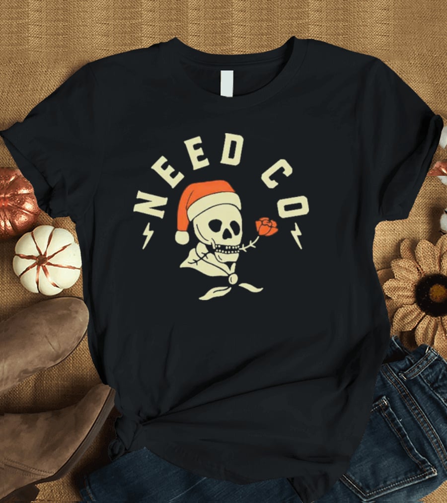 Need Co Santa Skull With Red Rose And Lightning Bolts T-Shirt