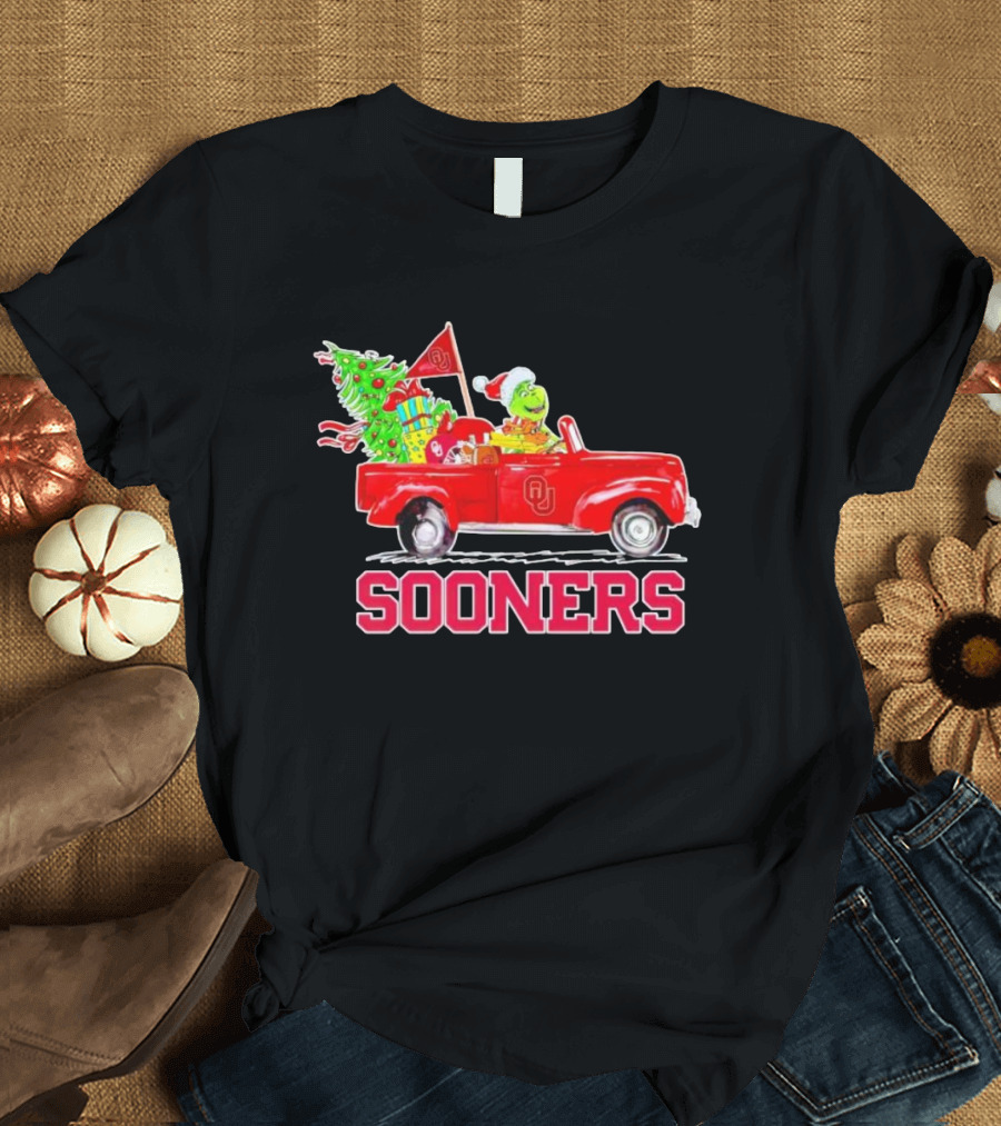 Sooners Grinch Driving Red Truck With Christmas Tree And Gifts T-Shirt
