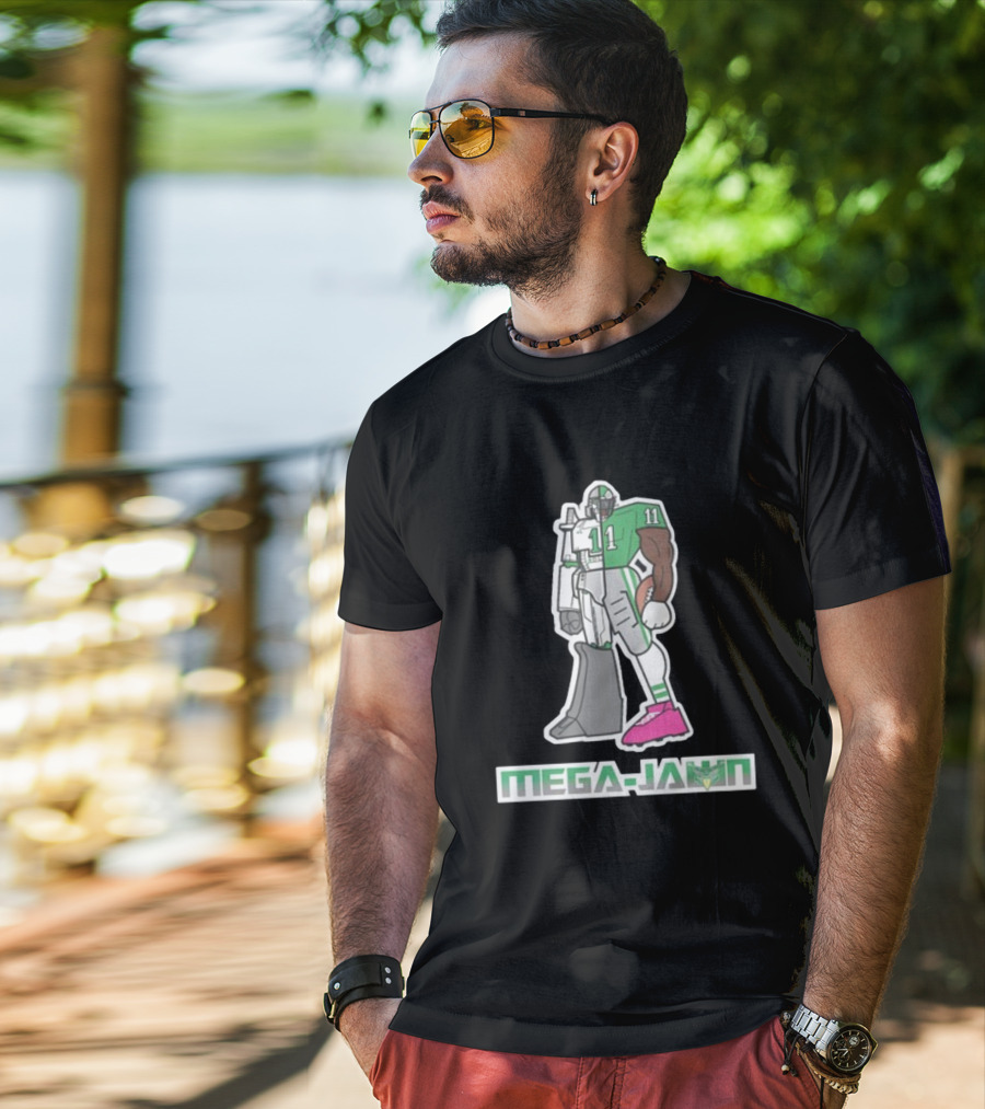 Phillygoat Mega-Jawn Football Robot Player 11 Green Pink Cleat Shirt made from 100% pre-shrunk ring-spun cotton, unisex regular fit based on U.S. standard sizing. The shirt is designed, cut, sewn, and printed in the United States. Available in sizes S-5XL.