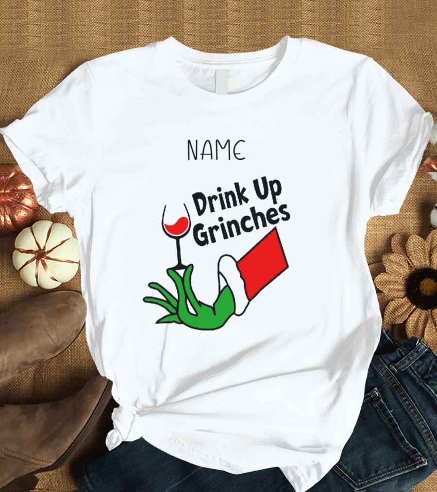 NAME Drink Up Grinches Xmas Grinch Hand Wine Glass Custom T-Shirt