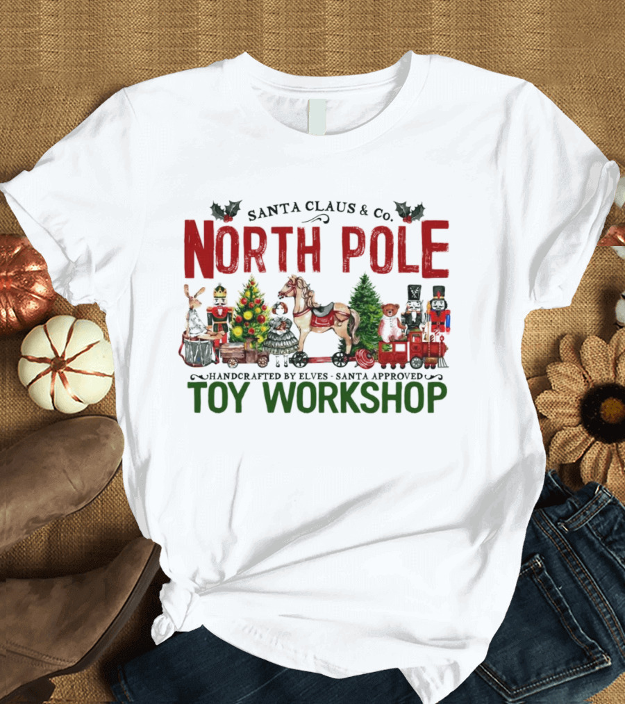 Santa Claus And Co. North Pole Handcrafted By Elves Santa Approved Toy Workshop T-Shirt