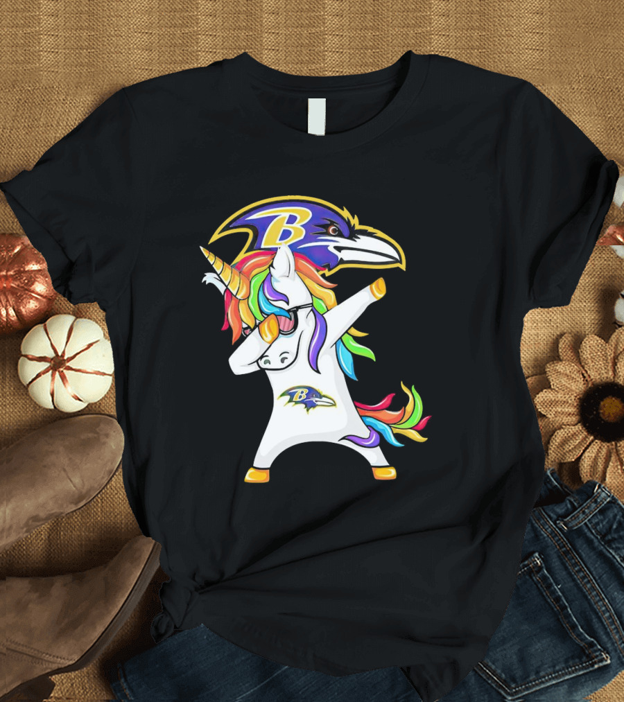Unicorn Dabbing Baltimore Ravens Emblem Rainbow Colors Shirt made from 100% pre-shrunk ring-spun cotton, unisex regular fit based on U.S. standard sizing. The shirt is designed, cut, sewn, and printed in the United States. Available in sizes S-5XL.
