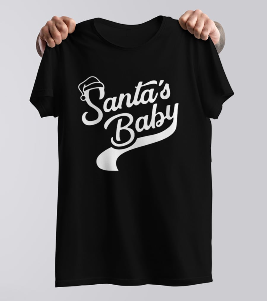 Santa's Baby Santa Hat Holiday Fun Shirt made from 100% pre-shrunk ring-spun cotton, unisex regular fit based on U.S. standard sizing. The shirt is designed, cut, sewn, and printed in the United States. Available in sizes S-5XL.