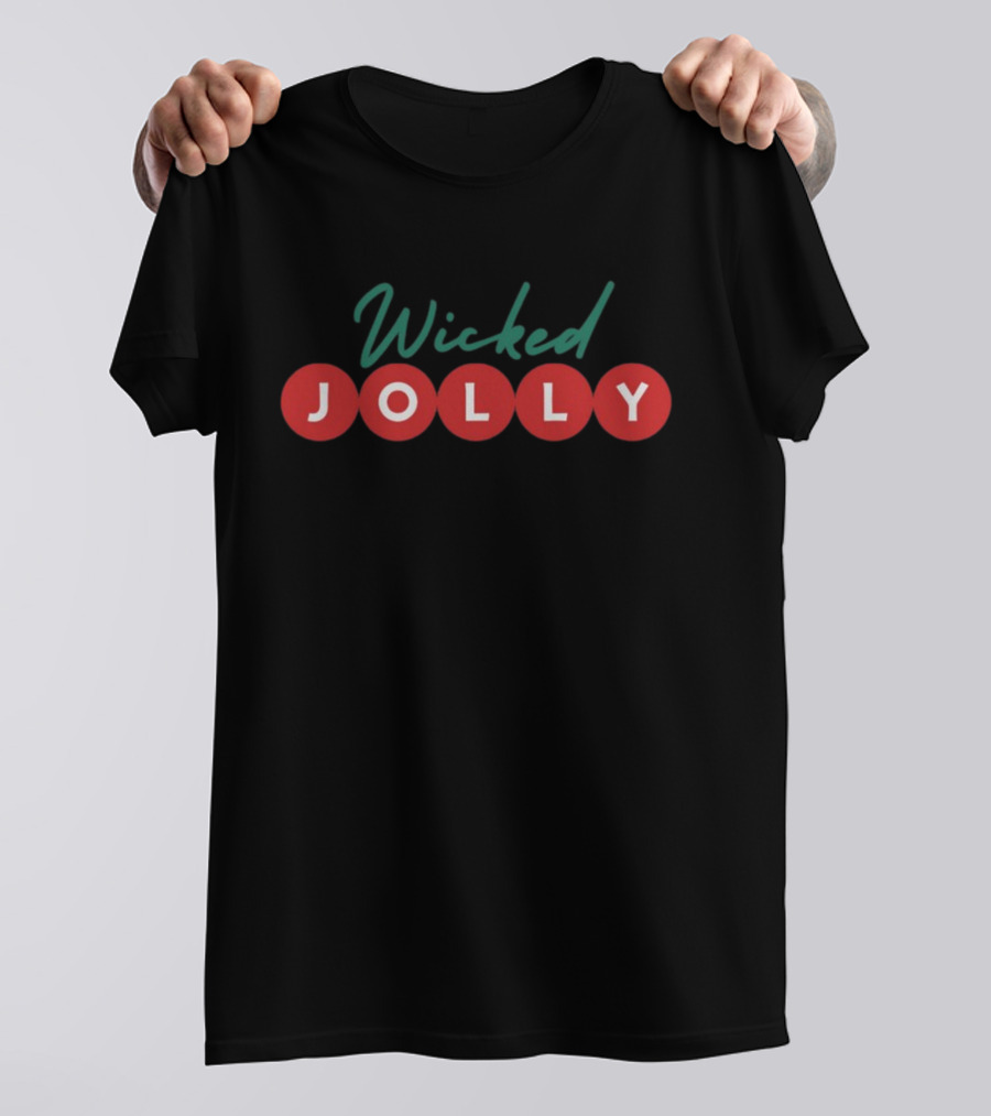 Wicked Jolly Christmas Holiday Shirt made from 100% pre-shrunk ring-spun cotton, unisex regular fit based on U.S. standard sizing. The shirt is designed, cut, sewn, and printed in the United States. Available in sizes S-5XL.