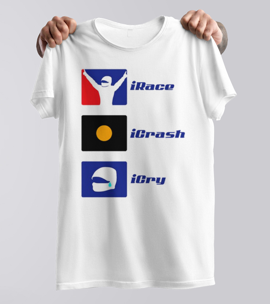 Basic Ollie iRace iCrash iCry Racing Icons and Emojis Shirt made from 100% pre-shrunk ring-spun cotton, unisex regular fit based on U.S. standard sizing. The shirt is designed, cut, sewn, and printed in the United States. Available in sizes S-5XL.