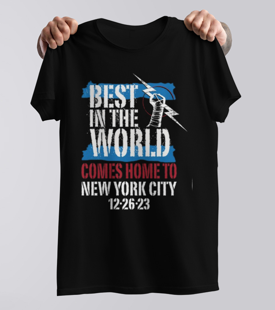 Best In The World Comes Home To NYC 12-26-23 With Fist And Lightning Bolt T-Shirt