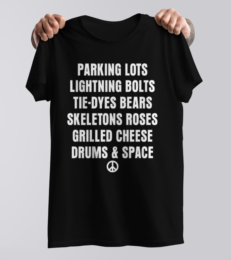Parking Lots Lightning Bolts Tie-Dyes Bears Skeletons Roses Grilled Cheese Drums And Space Peace Sign T-Shirt