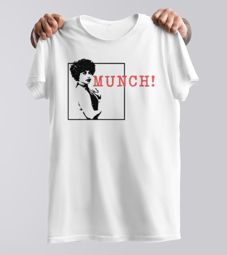 Ylikeapparel Munch Bold Red Text with Figure Image Shirt made from 100% pre-shrunk ring-spun cotton, unisex regular fit based on U.S. standard sizing. The shirt is designed, cut, sewn, and printed in the United States. Available in sizes S-5XL.