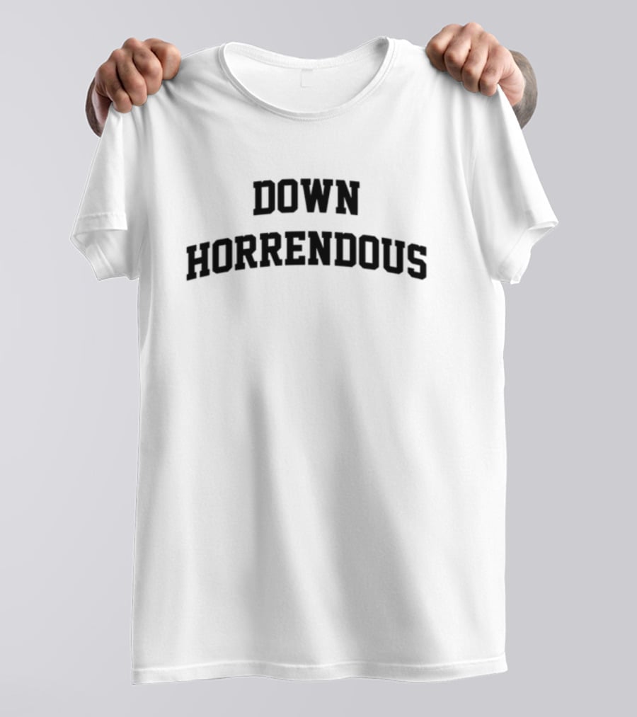Down Horrendous Arch Shirt made from 100% pre-shrunk ring-spun cotton, unisex regular fit based on U.S. standard sizing. The shirt is designed, cut, sewn, and printed in the United States. Available in sizes S-5XL.