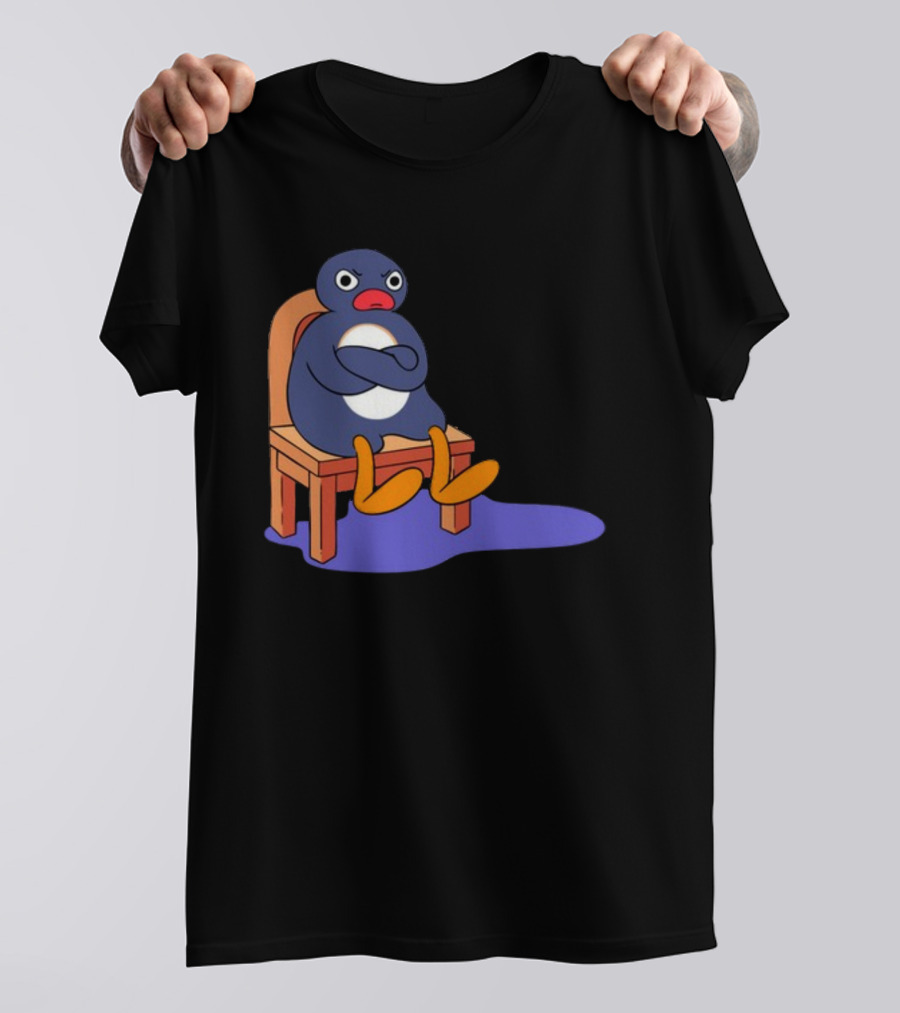 Everything Is Dumb And I Wanna Go Home Grumpy Penguin Sitting on Chair Shirt made from 100% pre-shrunk ring-spun cotton, unisex regular fit based on U.S. standard sizing. The shirt is designed, cut, sewn, and printed in the United States. Available in sizes S-5XL.