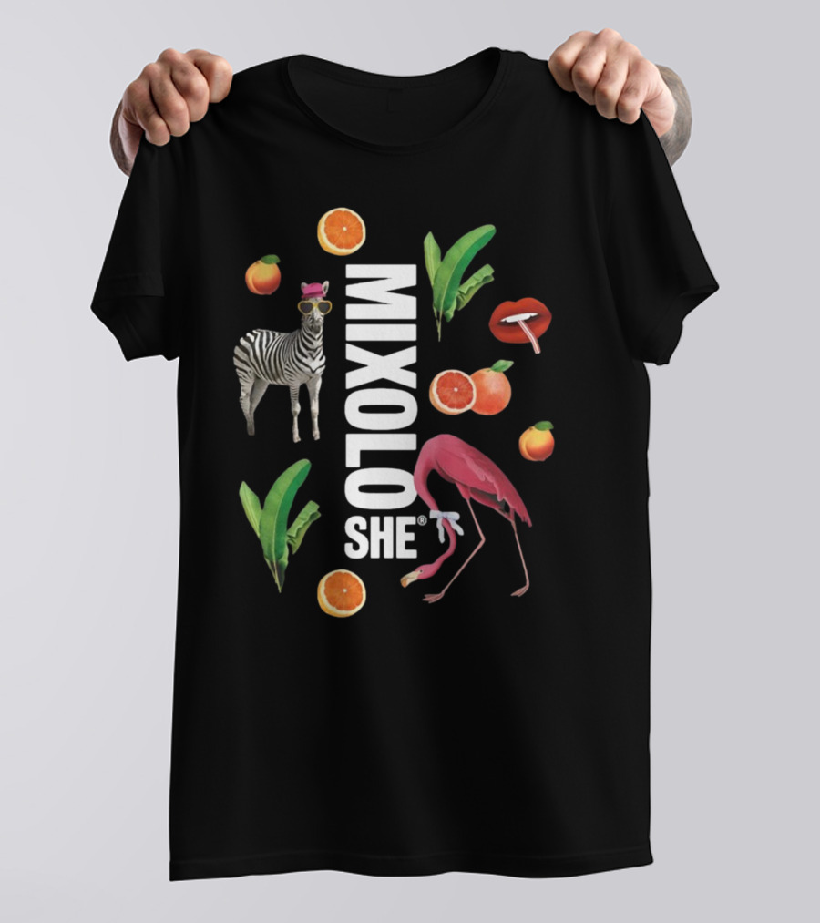 Mixoloshe Zebra Flamingo Lips with Fruits and Leaves Shirt made from 100% pre-shrunk ring-spun cotton, unisex regular fit based on U.S. standard sizing. The shirt is designed, cut, sewn, and printed in the United States. Available in sizes S-5XL.