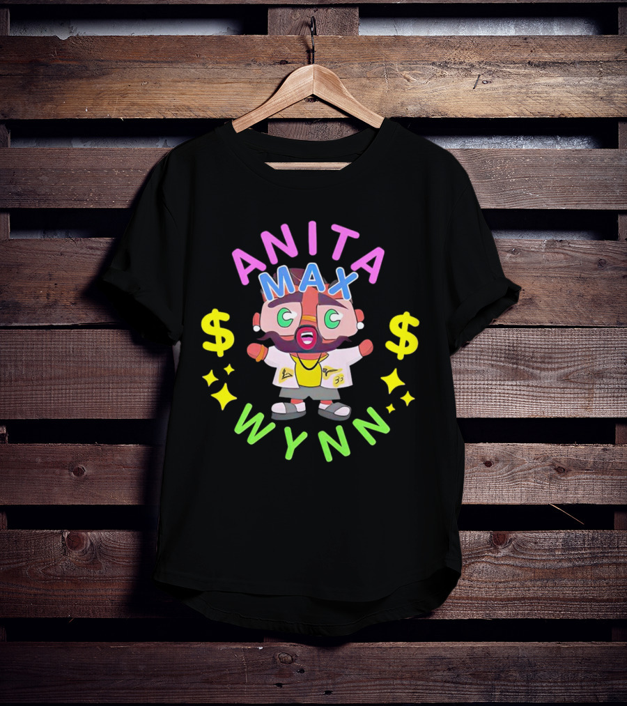 ANITA MAX WYNN Cartoon Character With Dollar Signs And Stars T-Shirt