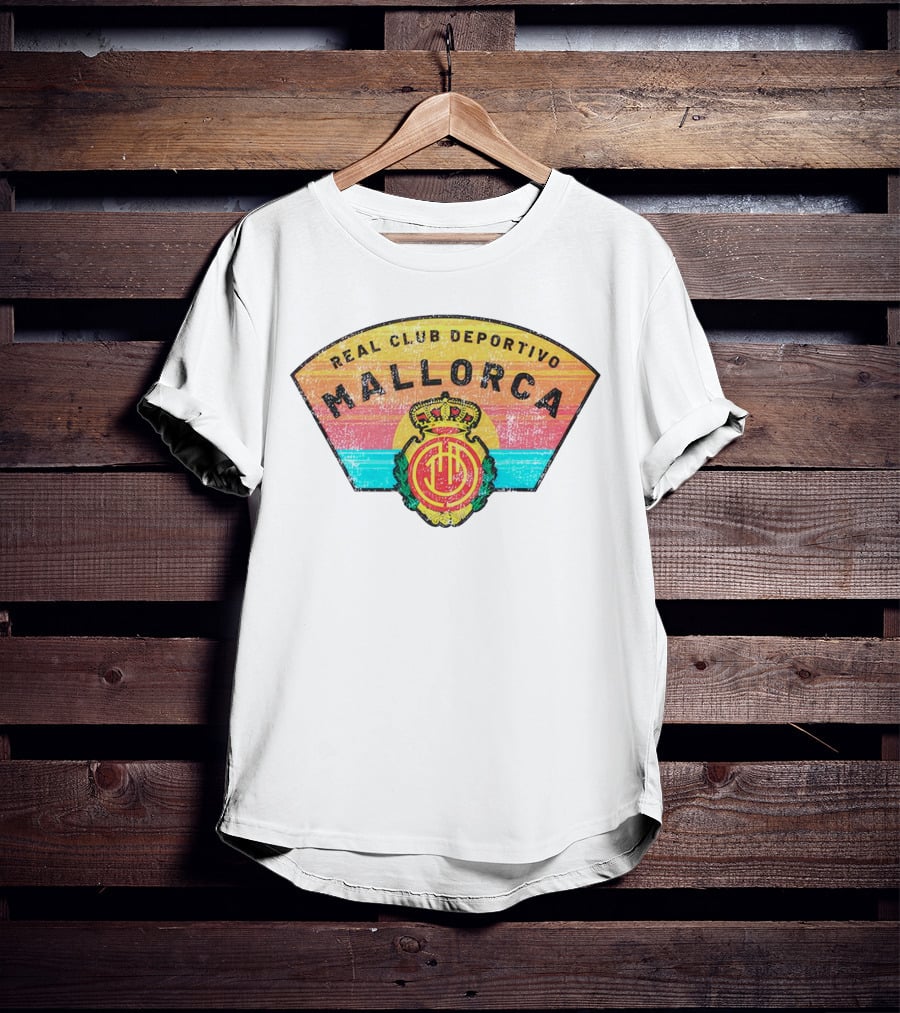 Real Club Deportivo Mallorca Vintage Logo Retro Stripes Shirt made from 100% pre-shrunk ring-spun cotton, unisex regular fit based on U.S. standard sizing. The shirt is designed, cut, sewn, and printed in the United States. Available in sizes S-5XL.
