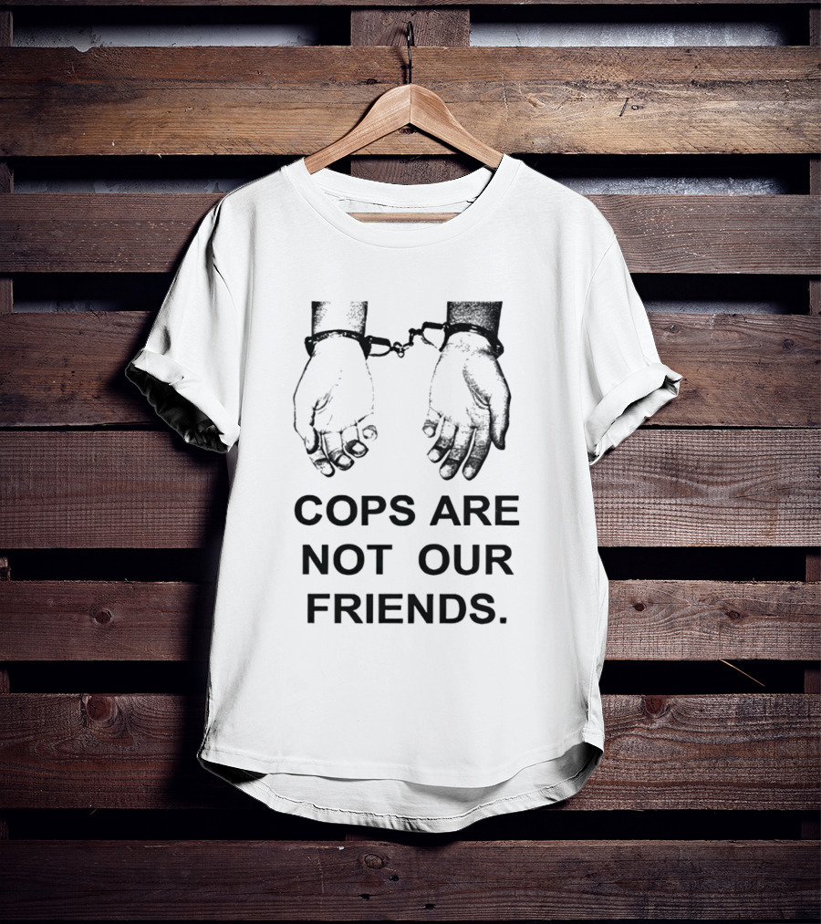 Cops Are Not Our Friends Handcuffed Hands Shirt made from 100% pre-shrunk ring-spun cotton, unisex regular fit based on U.S. standard sizing. The shirt is designed, cut, sewn, and printed in the United States. Available in sizes S-5XL.
