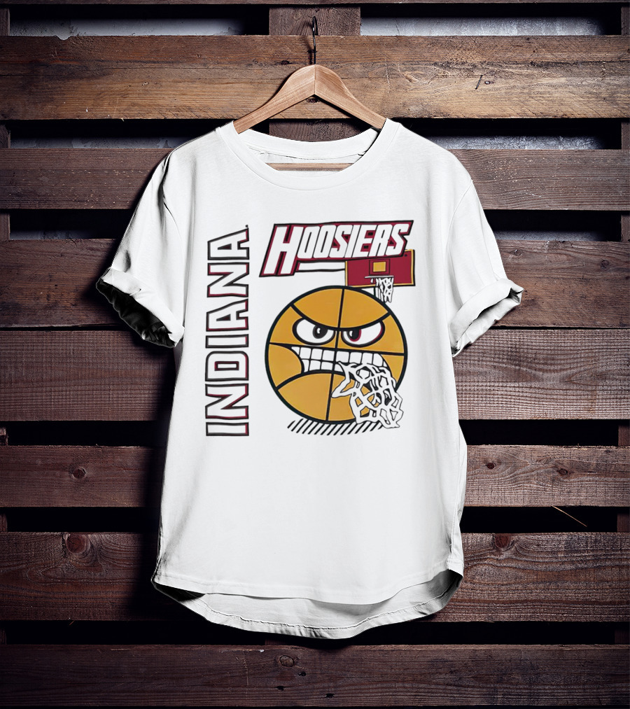 Indiana Hoosiers Angry Basketball Face Shirt made from 100% pre-shrunk ring-spun cotton, unisex regular fit based on U.S. standard sizing. The shirt is designed, cut, sewn, and printed in the United States. Available in sizes S-5XL.