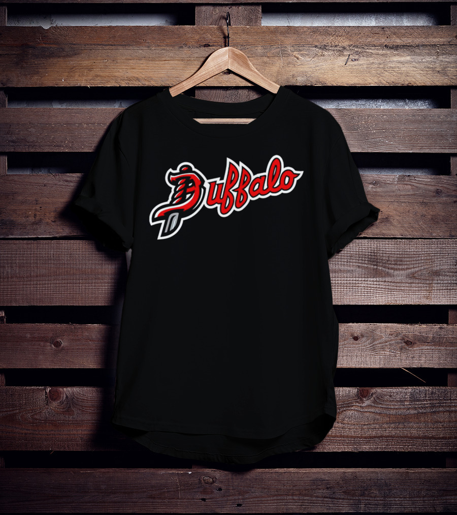 Buffalo Script with Sword Shirt made from 100% pre-shrunk ring-spun cotton, unisex regular fit based on U.S. standard sizing. The shirt is designed, cut, sewn, and printed in the United States. Available in sizes S-5XL.