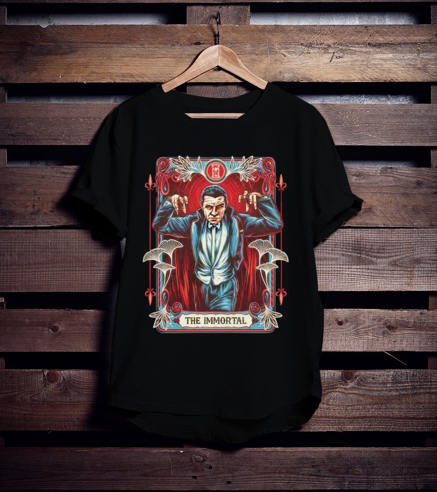 The Immortal Shirt made from 100% pre-shrunk ring-spun cotton, unisex regular fit based on U.S. standard sizing. The shirt is designed, cut, sewn, and printed in the United States. Available in sizes S-5XL.
