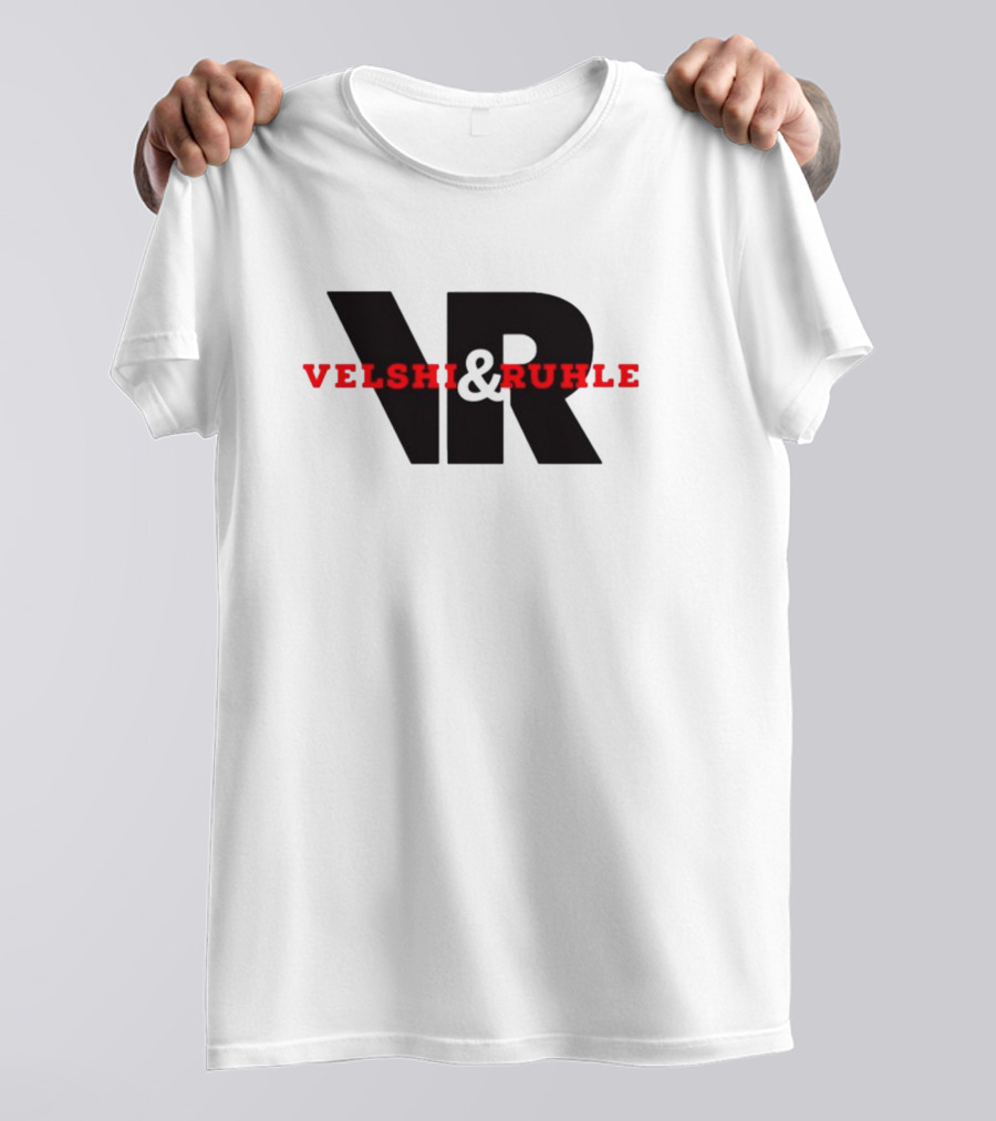 Velshi and Ruhle VR Shirt made from 100% pre-shrunk ring-spun cotton, unisex regular fit based on U.S. standard sizing. The shirt is designed, cut, sewn, and printed in the United States. Available in sizes S-5XL.