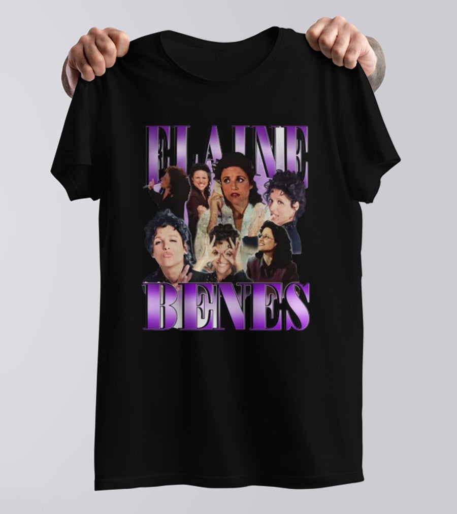 Elaine Benes Collage Shirt made from 100% pre-shrunk ring-spun cotton, unisex regular fit based on U.S. standard sizing. The shirt is designed, cut, sewn, and printed in the United States. Available in sizes S-5XL.